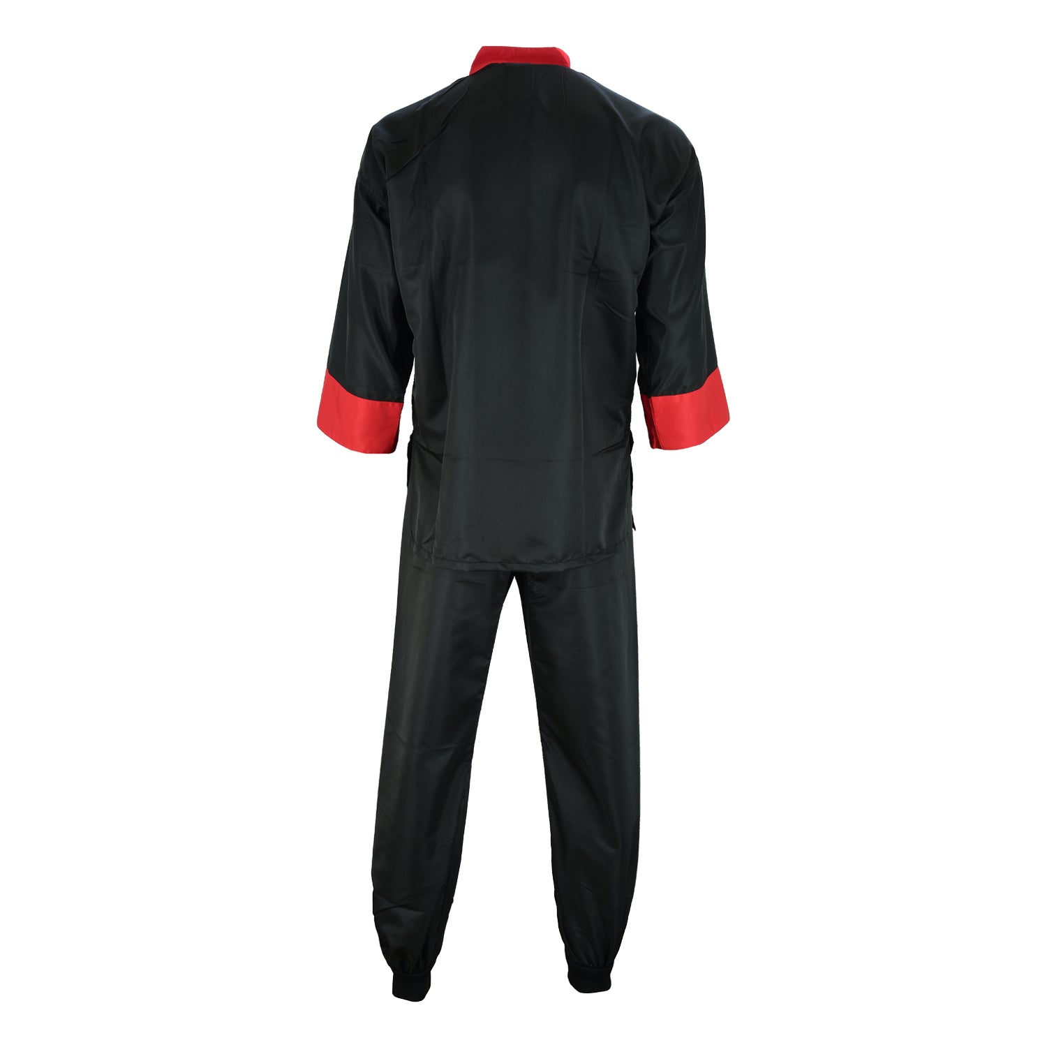 New Elite Ultra Light Microfibre Kung Fu Uniforms,So Light You want even Feel you have this on,All Black Colour. Red Cuffs and Toggle Fasteners to Jackets. Kung Fu Trousers with Elastic and Cord Waist and Elasticated Ankle for all sizes. Traditional outfit.