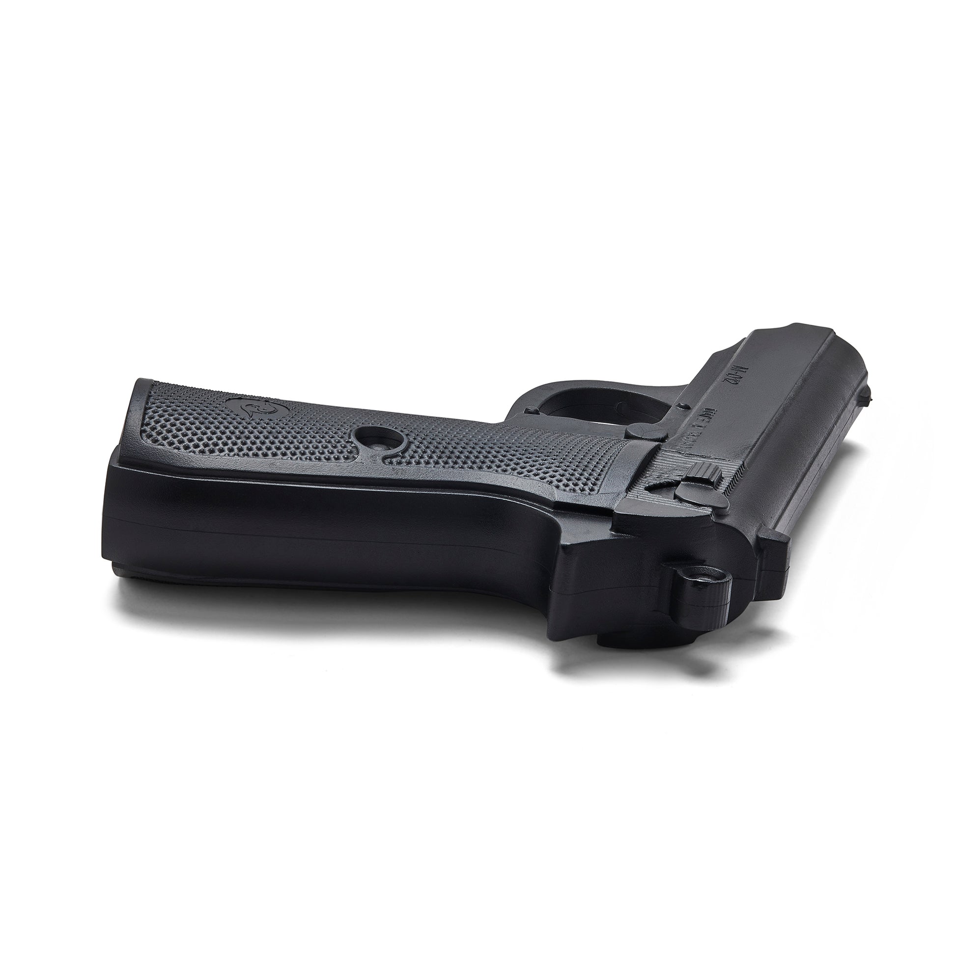 Black rubber hand gun replica with mock trigger. Realistic design by Playwell for use and training in method of non-deadly force. Measures: 7.5 inches in length and 5 inches width. Weighs 1 pound. Colour Black,