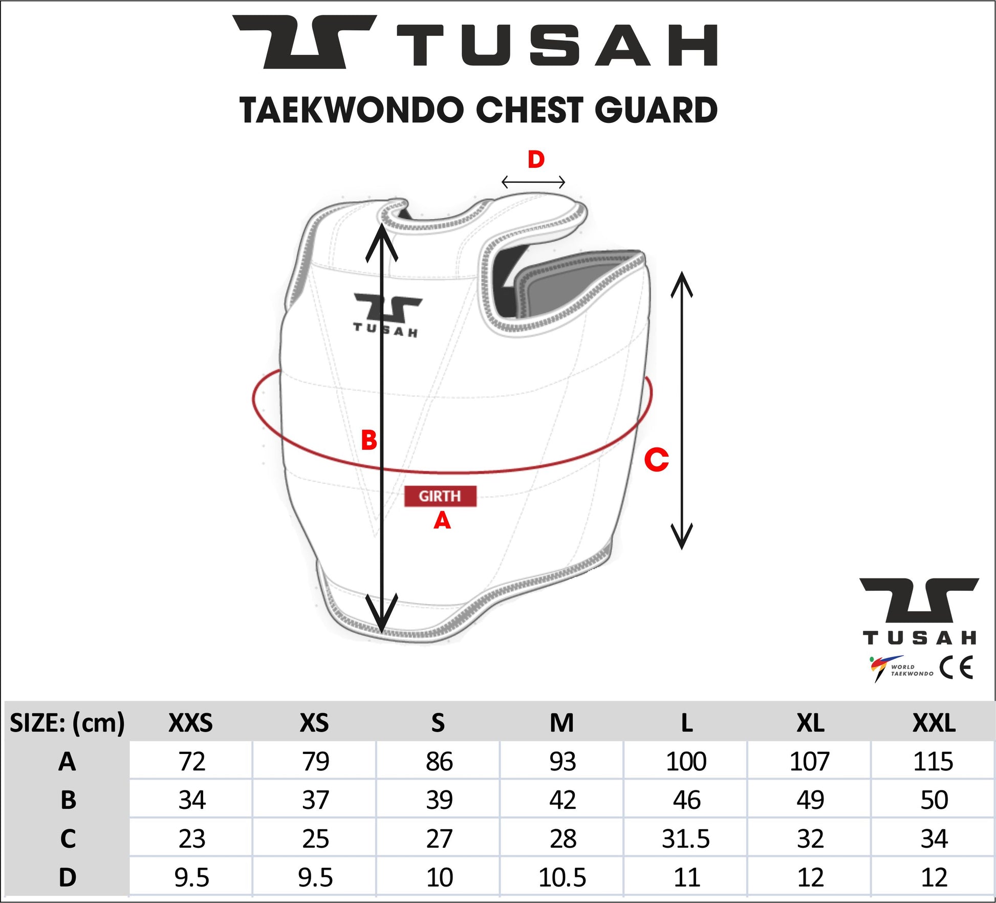 Designed with the toughest Taekwondo sparring training in mind, this Tusah brand WT Approved Taekwondo Trunk Protector offers excellent, unhindering protection against strikes to the chest and upper body.